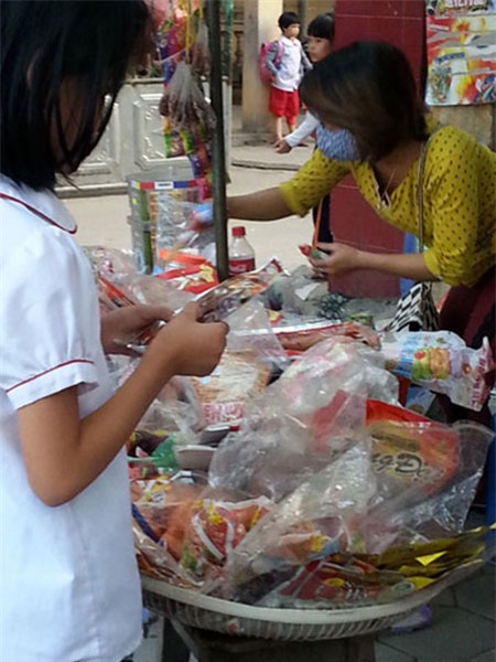 Một điều đáng chú ý khác là không chỉ là các em học sinh tự mua đồ ăn thức uống không rõ nguồn gốc xuất xứ ngoài cổng trường mà một số phụ huynh khi đi đón thấy con cháu đòi cũng chiều rút tiền ra mua.