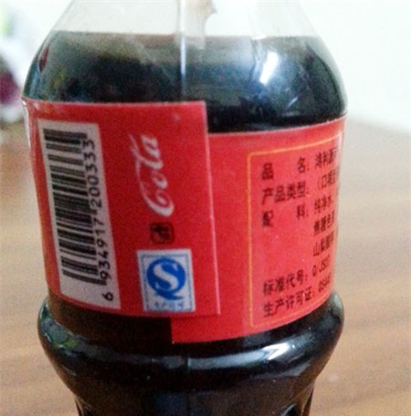 Trên vỏ chai chỉ có duy nhất 1 chữ rõ ràng là “Coca”, còn lại là chữ Trung Quốc và mã vạch hàng hóa dán trên chai 6934… cũng thể hiện là của Trung Quốc. Nhãn in trên chai không ghi ngày sản xuất và hạn sử dụng, cũng không có nhãn phụ tiếng Việt hay tiếng Anh để nhận biết thành phần nước uống.