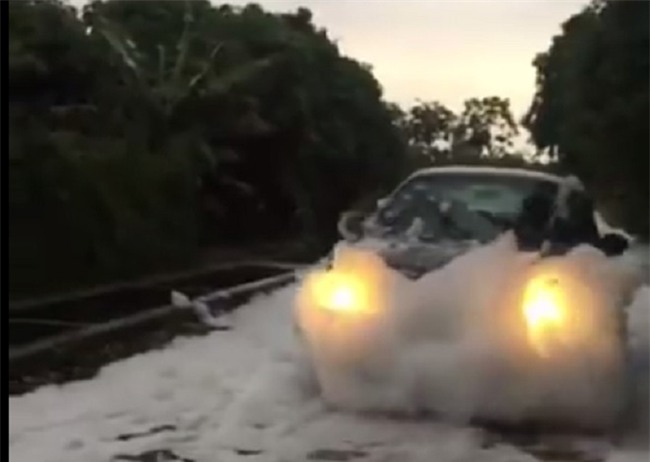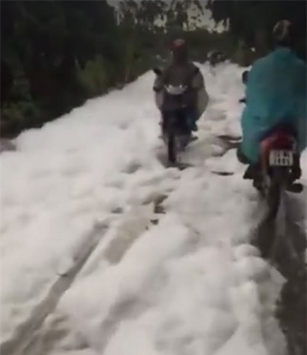 Mới đây, một đoạn clip dài 45 giây xuất hiện trên mạng xã hội ghi lại cảnh một con đường phủ trắng bọt giống như tuyết khiến cư dân mạng không khỏi xôn xao.