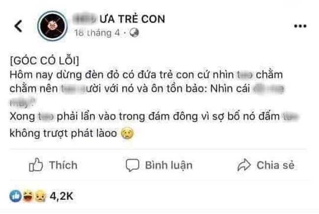 Bên cạnh đó, có nhiều đăng tải trên mạng thể hiện sự vui vẻ, hả hê khi xúc phạm trẻ em bằng những lời lẽ thiếu văn hóa và thô tục. Bài đăng này luôn được sự ủng hộ nhiệt tình của các thành viên trong nhóm hội này.