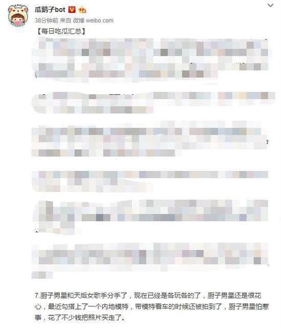 Cụ thể, một blogger trên Weibo đã chia sẻ thông tin với nội dung: "Nam diễn viên là đầu bếp và nữ ca sỹ thiên hậu đã chia tay. Hiện tại mỗi người một ngả rồi".