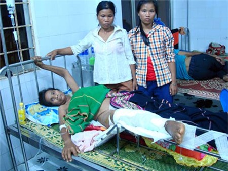 Hiện bệnh nhân nằm điều trị hồi sức tại phòng 5 - khoa Ngoại chấn thương bệnh viện đa khoa Kon Tum đã được 10 ngày nay, tình trạng sốc giảm dần, tuy nhiên tổn thương ở chân phải ngày càng nặng, chưa thoát khỏi tình trạng sốc và nhiễm khuẩn huyết, hoại tử toàn bộ da cẳng chân phải, da bong ra từng mảng như rộp do phỏng và chưa thấy dấu hiệu phục hồi.