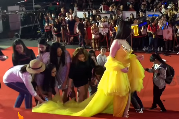 Thư Dung dính nghi án "làm lố" thuê fanclub đến cổ vũ ở sự kiện thảm đỏ Mai Vàng. (Nguồn: Saigon Daily).