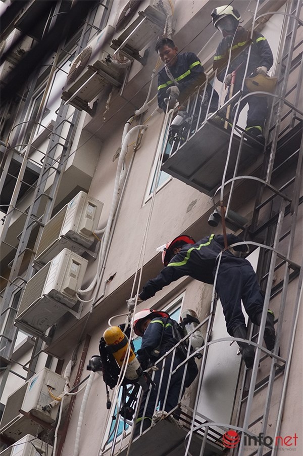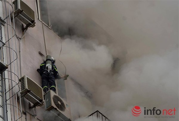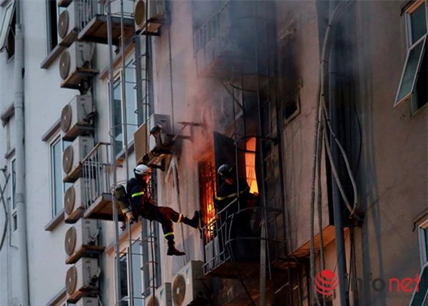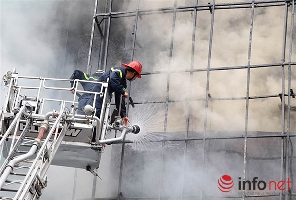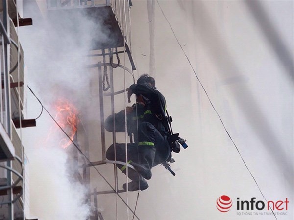 Tuấn Anh - chiến sỹ thuộc Phòng 2 (Cảnh sát PCCC Hà Nội) cho biết: "Trong lúc trèo thang thoát hiểm lên tiếp cận hiện trường đám cháy, tôi bị bỏng tay do thang bị ngọn lửa nung nóng". Sau khi hoàn thành nhiệm vụ, Tuấn Anh đã được đưa vào viện để sơ cứu vết thương.