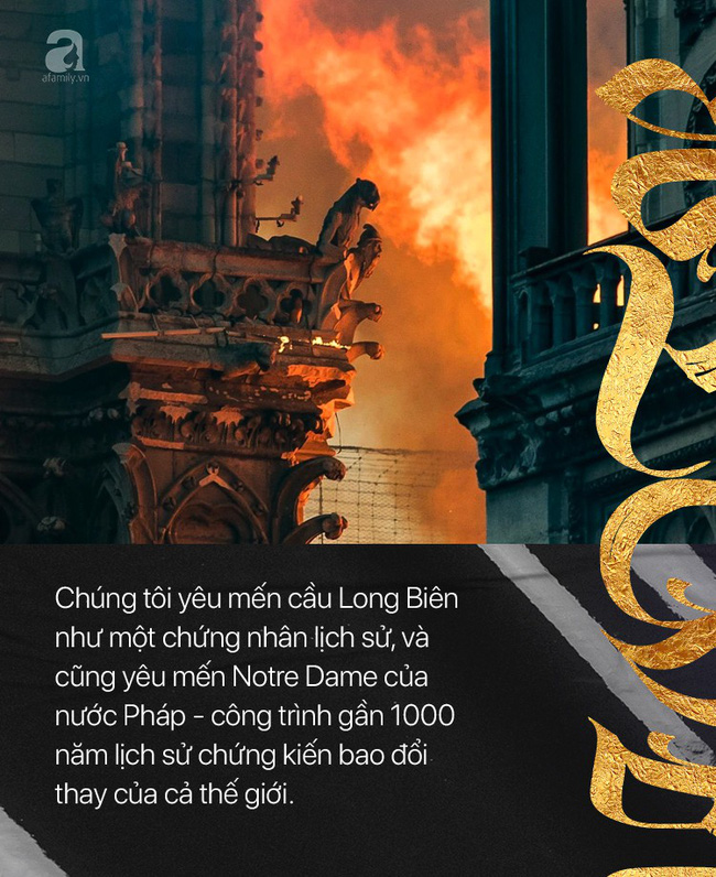 Chúng tôi yêu mến cầu Long Biên như một chứng nhân lịch sử, và cũng yêu mến Notre Dame của nước Pháp - công trình gần 1.000 năm lịch sử chứng kiến bao đổi thay của cả thế giới. Notre Dame đi vào văn học, đi vào lịch sử với những câu chuyện về cách mạng Pháp, về công xã Paris. Nhiều người hiểu rõ giá trị của Notre Dame xét trên bình diện thế giới, vượt lên ngoài biên giới nước Pháp.
