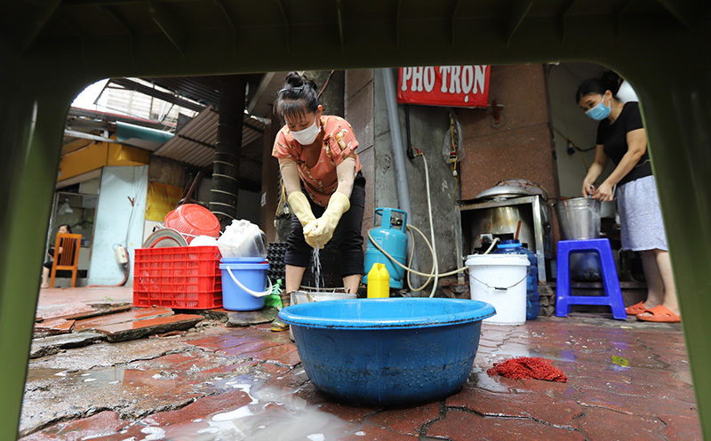 Hàng quán dọn dẹp chuẩn bị mở lại