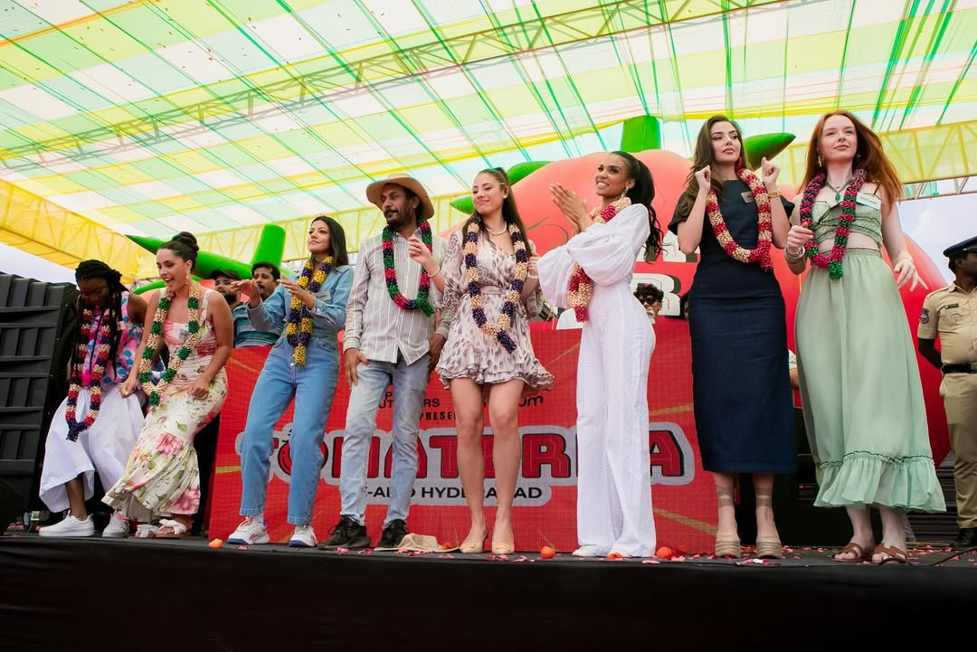 Bên cạnh các hoạt động tại khách sạn, Ý Nhi cùng dàn thí sinh còn trải nghiệm nhiều sự kiện văn hóa, trong đó có lễ hội cà chua tại Ấn Độ.