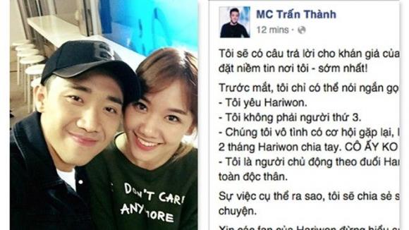 Chiều vợ không chỉ bằng vật chất và sự yêu thương, Trấn Thành còn xứng mặt đàn ông đại trượng phu khi là bờ vai vững chắc che thị phi cho vợ yêu. Còn nhớ, thuở mới yêu nhau, họ vấp phải sự phản đối. Hari Won bị hiểu lầm là tham phú phụ bần và chịu nhiều sự miệt thị, chỉ trích từ cư dân mạng. Trấn Thành có thể im lặng, cũng có thể bàng quang như không có chuyện gì xảy ra. Tuy nhiên, anh đã không làm thế. Bằng dũng khí và tình yêu dành cho người phụ nữ của mình, Trấn Thành đứng ra nhận lỗi về mình. Nam danh hài dành hẳn một tâm thư giữa tâm bão chỉ để giải thích cho mọi người hiểu rằng người anh yêu vô tội. Cô ấy xứng đáng yêu và được yêu. Sau động thái ấy, chính anh là người bị mũi dùi dư luận "đâm" tả tơi, thậm chí thương tích đầy mình. Thế nhưng, Trấn Thành chưa từng ca thán, miễn người anh yêu an toàn, bình yên là đủ.