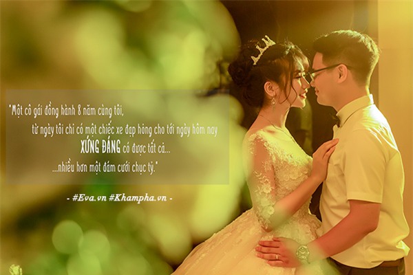 Hơn nữa, phải người trong cuộc mới hiểu. Bản thân mình và Trang yêu nhau 8 năm, khi mình chưa có gì trong tay, còn Trang có quá nhiều sự lựa chọn tốt hơn mình thì Trang vẫn quyết tâm cùng mình gây dựng sự nghiệp. Một cô gái đồng hành 8 năm cùng mình, từ ngày mình chỉ có 1 chiếc xe đạp hỏng cho tới ngày hôm nay, xứng đáng có được tất cả, nhiều hơn 1 đám cưới chục tỷ"