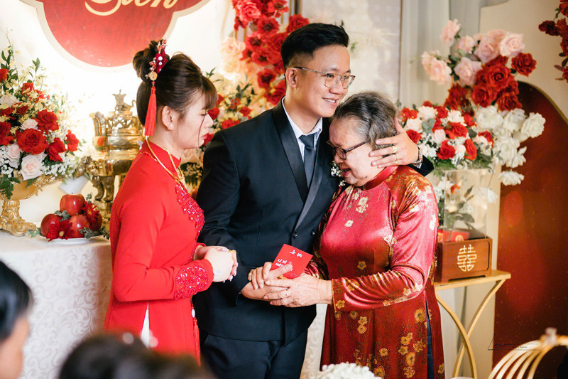 Trái ngược với sự lo lắng của nhà gái, gia đình Huy lại vô cùng phấn khởi. “Hôm trước mẹ anh đi coi ngày, hôm sau nhà trai sang xin cưới luôn, rồi chỉ 2 tuần sau là đám hỏi”, Nga cười nhớ lại.