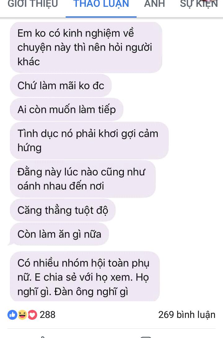 Thành viên T.T.G bức xúc "ông này chắc chắn ăn phở rồi còn gì nữa. Giọng điệu sặc mùi ích kỷ. Nếu người đàn ông làm tình giỏi hay tâm lý với vợ thì đã không để vợ bị khô hạn".