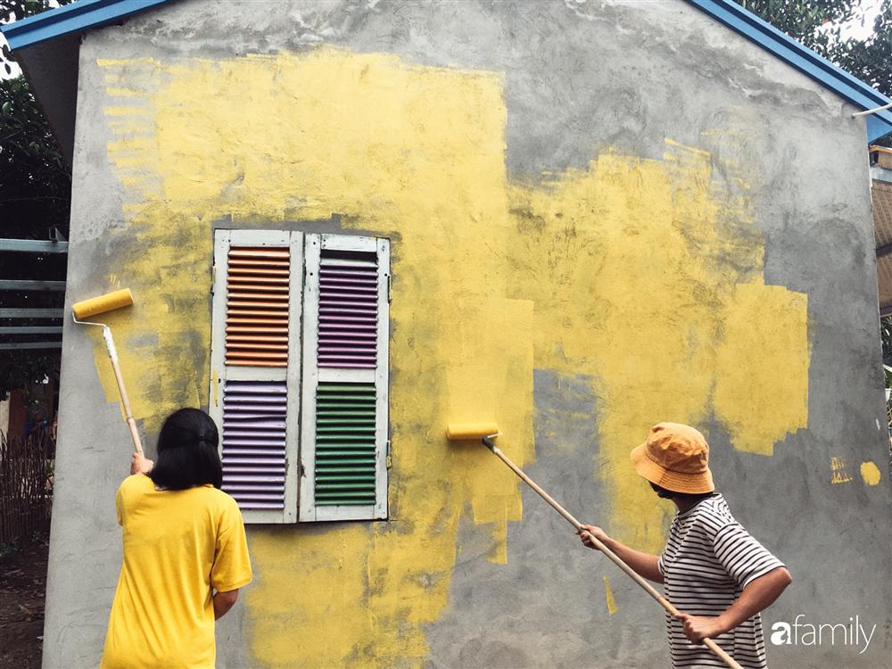 Cô gái chia sẻ thêm: "Mình tiết kiệm chi phí tối đa nên đã đi xin lại cánh cửa cũ, cành cây và tận dụng những cánh cửa ngày trước ở Cá về sơn sửa rồi sơn lại làm cửa sổ, cửa ra vào, bàn uống nước, vật dụng trang trí… Ba tháng là quãng thời gian mình cố gắng thật nhiều. Có những ngày mệt nhoài, nhưng việc vẫn còn đó nên vẫn mò dậy làm được chút nào hay chút đó".