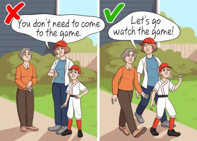Điều quan trọng là mẹ chồng bạn phải tự mình đưa ra quyết định để bà không cảm thấy bị lạc lõng hoặc cảm giác bị bỏ rơi. Chẳng hạn, bà ấy sẽ có thể có lựa chọn của riêng mình và bày tỏ cảm xúc của riêng mình khi nói đến việc tham dự các sự kiện thể thao của cháu mình.