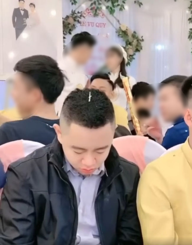 Trong clip, một chàng trai có gương mặt sáng, trắng trẻo ngồi quay lưng về phía sân khấu chính của đám cưới nơi cô dâu chú rể đang đứng. Từ đầu đến cuối, đôi mắt anh đều rưng rưng, hơi ươn ướt lệ, có đoạn anh ngoái lại phía sau nhìn bạn gái cũ của mình cùng người mới, sau đó hơi lắc đầu rồi cúi mặt xuống, tỏ ra bất lực.