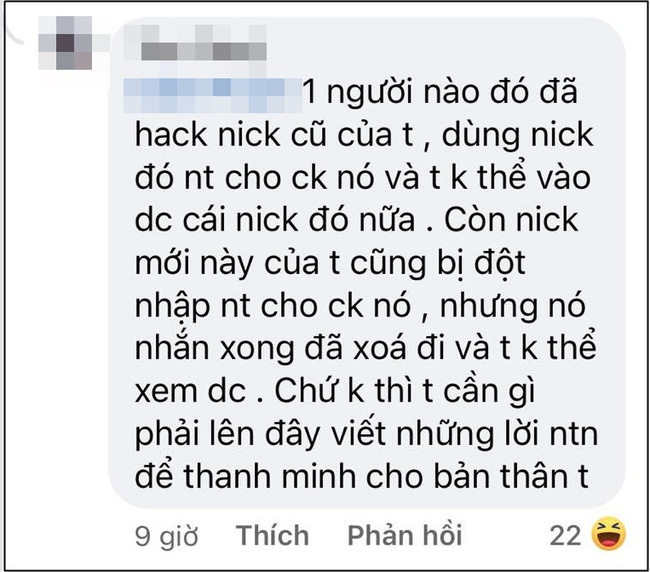 Những đoạn tin nhắn khiến cô vợ vô cùng hoang mang và đau khổ. Ngay sau đó, tiểu tam bình luận ngay dưới bài đăng cho biết mình bị hack tài khoản facebook. Tuy nhiên, dân mạng đã thấy điều bất cập khi dù bị hack, chuyển tài khoản thì đối tượng nhắn tin vẫn là chồng của người ta. Bởi vậy, có lẽ chẳng có chuyện bị vu oan, đây là cách cô gái lấp liếm lí do mà thôi.