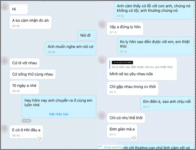 Đọc đoạn tin nhắn tiếp theo, gã đàn ông hứa hẹn với nhân tình chuyện lần này sẽ quyết liệt bỏ vợ để cưới bồ.