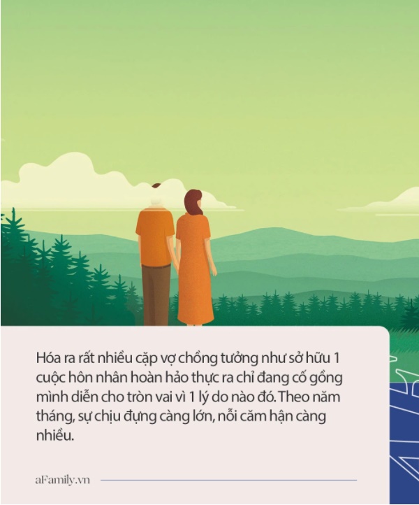 Hóa ra rất nhiều cặp vợ chồng tưởng như sở hữu 1 cuộc hôn nhân hoàn hảo thực ra chỉ đang cố gồng mình diễn cho tròn vai vì 1 lý do nào đó. Theo năm tháng, sự chịu đựng càng lớn, nỗi căm hận càng nhiều.