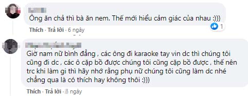 Bên cạnh đó cũng có nhiều ý kiến phản đối lý lẽ đi karoke tay vịn mà không làm gì của người chồng, phê phán anh này mắc lỗi thì nên nhận sai và sửa chứ đừng cố bao biện: