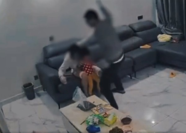 Đoạn video ghi cảnh người đàn ông nhẫn tâm giáng những đòn tấn công tới tấp vào đầu vợ trong khi cô đang ôm con nhỏ. Lúc sau, người phụ nữ buông con ra, người chồng nhân cơ hội kéo mạnh rồi ghì chặt cổ khiến cô hoảng sợ vùng vẫy. Bấp chấp con nhỏ khóc thét khi chứng kiến sự việc, người đàn ông vẫn không buông tha và ngồi đè vợ trên ghế rồi tiếp tục đánh đập.