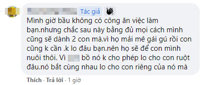 - Cố gắng lên! Giờ buồn nghĩ không giải quyết được gì, an thai để sinh con cho tốt, nhờ anh chị và bố mẹ bảo vệ mình thôi, tích trữ kinh tế và chuẩn bị tinh thần nuôi con mình thôi