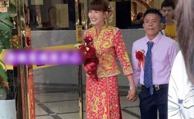 Một cặp đôi mới cưới ở thành phố Trạm Giang, tỉnh Quảng Đông, Trung Quốc mới đây đã khiến cho tất cả phải chú ý. Được biết, cô dâu mới 19 tuổi, rất xinh đẹp với nụ cười ngọt ngào. Cô còn cao hơn chồng mình nửa cái đầu. Chú rể 30 tuổi, nhìn vẻ ngoài thậm chì còn già dặn hơn tuổi được công khai.