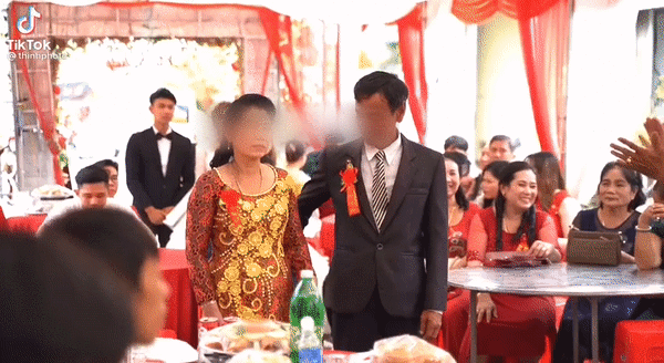 Cụ thể, thời khắc bố mẹ được xướng tên lên sân khấu để làm 1 số thủ tục như trao vàng, uống rượu mừng cùng các con, bác trai đã chủ động chìa tay ra để nắm tay vợ. Thế nhưng, mặc cho 'chồng' cười tươi rói, bác gái lạnh lùng tìm cách gạt đi. Không phải chỉ một lần, những nỗ lực sau đó của bác trai vẫn bị vợ phũ phàng. Dù thế, người đàn ông trung niên này vẫn nở nụ cười hiền, tiến bước lên sân khấu chuẩn bị cho những nghi thức trong lễ cưới.