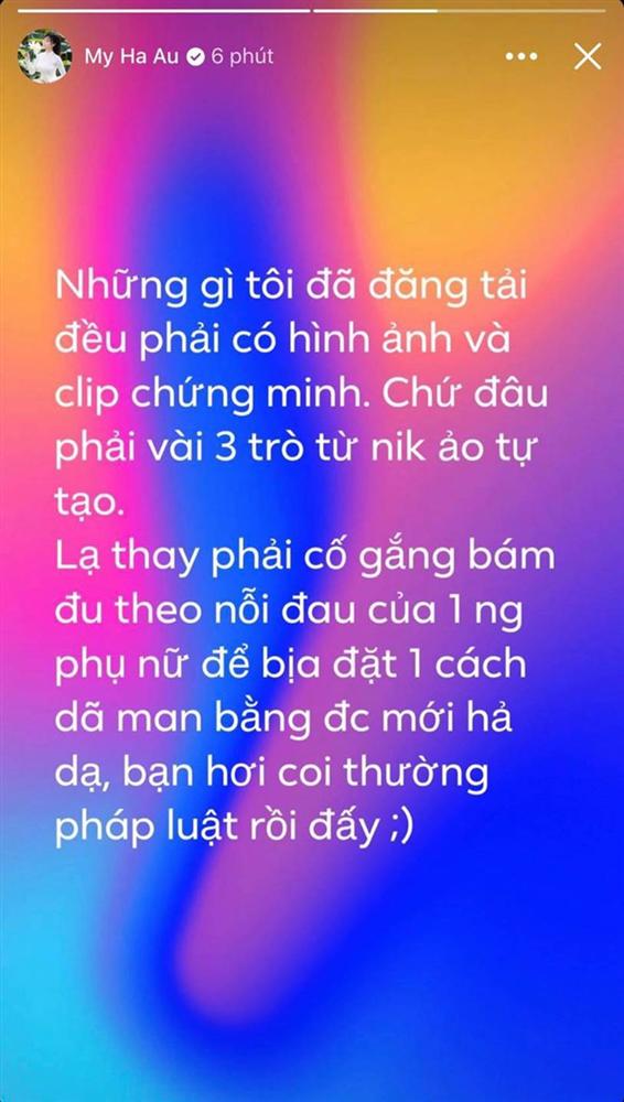 Ngay sau đó, Âu Hà My cũng lần nữa lên tiếng bằng story facebook. Có lẽ biết được những tin đồn đang bủa vây nên nữ giảng viên đã đưa ra tuyên bố: