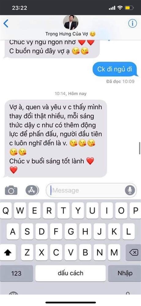 Đúng là, lúc mới yêu nào vui biết bao nhiêu. Bao nhiêu đường mật ngọt ngào, những lời hoa mỹ mà bình thường chẳng thể nào nghĩ ra thì khi yêu điều đó chả khó khăn gì cả. Những lời lẽ trong tin nhắn mà anh chàng Trọng Hưng này gửi cho vợ đúng là khó ai mà sánh bằng! Thậm chí chỉ mới xa nhau có vài tiếng, anh chồng này còn nhắn những lời có cánh, ủy mị nhớ thương vợ như... mình đã xa nhau đã lâu lắm rồi. "Vợ à, quen và yêu vợ chồng thấy mình thay đổi thật nhiều. Mỗi sáng thức dậy chồng như có thêm động lực để phấn đấu, người đầu tiên chồng luôn nghĩ đến là vợ. Chúc vợ buổi sáng tốt lành!"