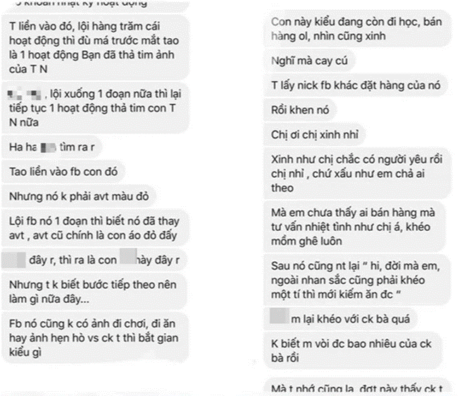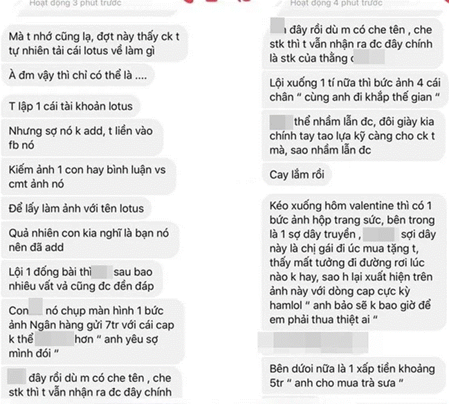 "Sợ nó không add, tao liền vào facebook nó kiếm ảnh 1 con hay bình luận ảnh nó để lấy làm ảnh và tên Lotus. Quả nhiên con kia nghĩ là bạn nó nên đã đồng ý kết bạn", cô vợ nói về chiêu cao tay tiếp theo.