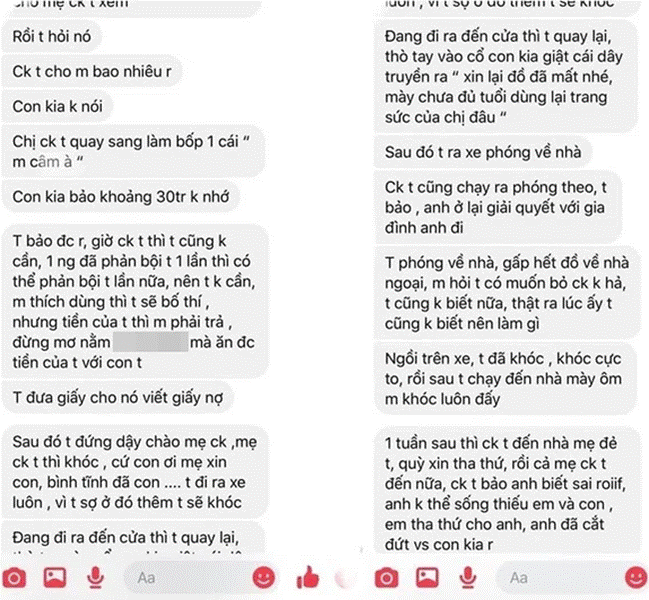 Mới đây, màn tiết lộ chuyện phát hiện chồng ngoại tình của một bà vợ thu hút hơn 30 nghìn like.