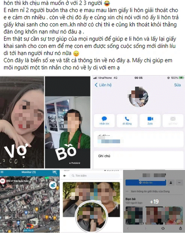 Còn đây là biển số xe và tất cả thông tin về nó đây ạ. Mấy chị giúp em mõi người một tin nhắn cho nó về ly dị với em ạ".