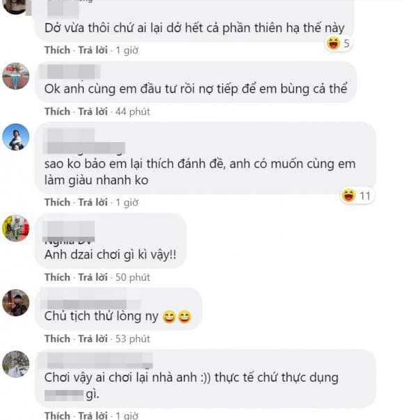 ''Chắc thử lòng nhưng mà diễn hơi sâu'', ''Nói tao thực dụng thoải mái. Giờ không có tiền không sống được'', ''Dở vừa thôi chứ, ai lại dở hết cả phần thiên hạ thế này'', ''Anh trai chơi kỳ vậy'', ''Chủ tịch thử lòng người yêu và cái kết''... nhiều cư dân mạng bình luận.