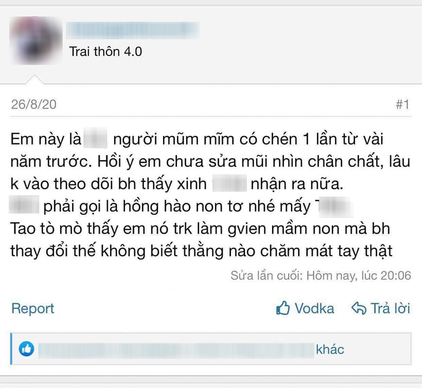 Theo chủ thớt kể, cô không hề có mối quan hệ gì với thanh niên tên H này. Nhưng một ngày đẹp trời bỗng phát hiện ảnh mình bị đăng lên các diễn đàn với lời khẳng định "đã 'chén' được rồi".