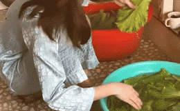 Trong clip, cô gái dùng một chiếc bàn chải lớn, nhẹ nhàng chà từng lá một cách cẩn thận rồi bỏ vào chậu nước sạch khác bên cạnh. Cảnh tượng này khiến chồng sắp cưới của cô không khỏi bất ngờ, liền lấy điện thoại quay lại.