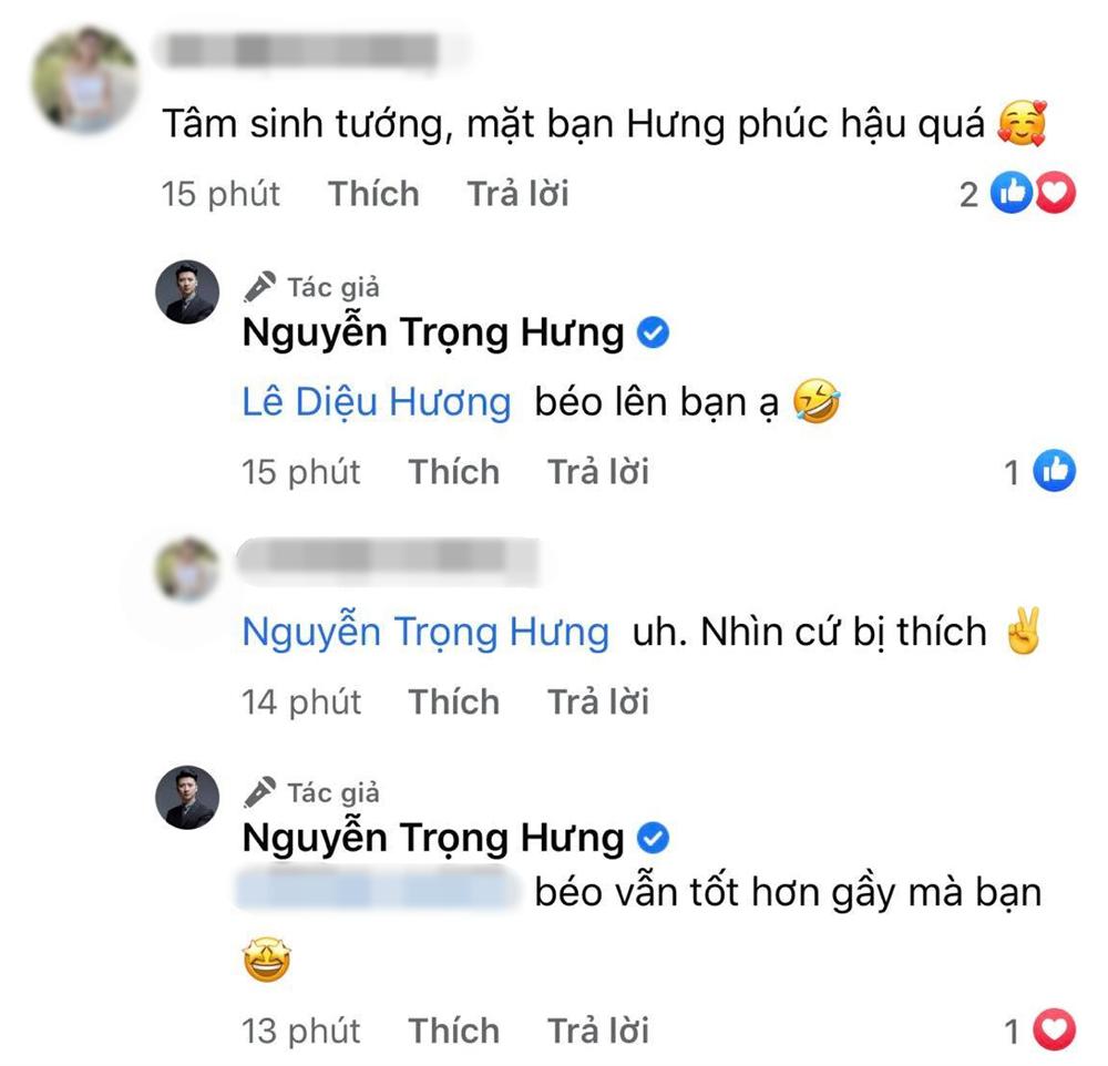 Đáng chú ý là ở phần bình luận, khi có người khen "mặt bạn Hưng phúc hậu quá", đạo diễn trẻ đã trả lời "Béo lên bạn ạ".