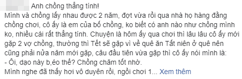 Như vậy dù lâu ngày không gặp nhưng vừa nhìn thấy, bà cô chồng của chủ top đã dành cho cháu dâu những lời nhận xét và góp ý không thể “trần trụi” hơn. Tuy rằng những lời nói của bà không hoàn toàn sai vì nó xuất phát từ hiện thực cuộc sống nhưng cũng khiến cô cháu dâu khó chịu và đặc biệt là động đến tự ái của cháu trai. Thế là bất chấp tình thân lâu ngày không gặp, anh chồng thẳng tính đã "xổ" ra một tràng lý lẽ để bảo vệ vợ, thậm chí nói cô ruột vô duyên, cần bỏ cái tính hay chê bai khiến người này im bặt.