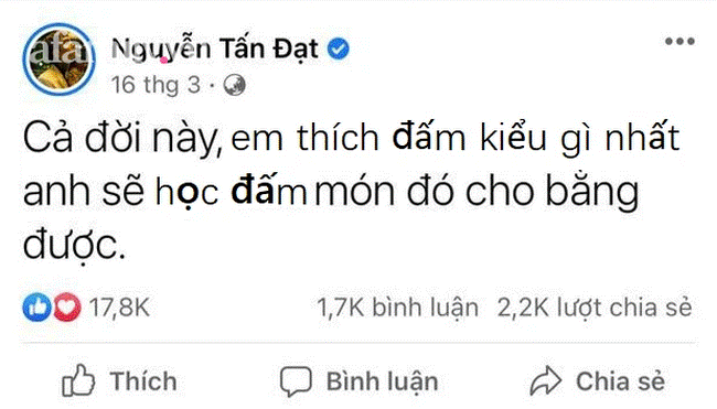 Vậy nên, chúng tôi xin mạn phép sửa lại đám status yêu đương mùi mẫn của Đạt G, sao cho đúng bản chất ngôn tình chàng ca sĩ muốn trao gửi: Đơn giản thôi, thay các động từ tỏ vẻ yêu đương sến sẩm thành "đấm" là hợp lý ngay!