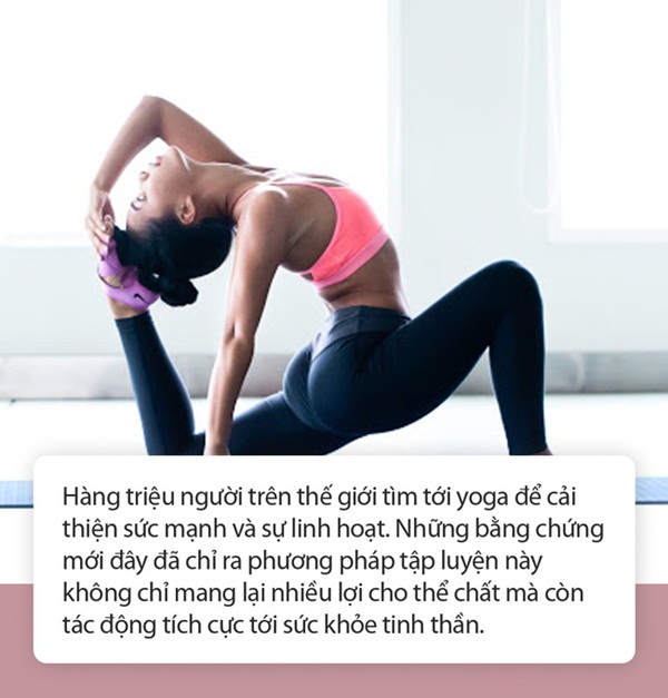 Hàng triệu người trên thế giới tìm tới yoga để cải thiện sức mạnh và sự linh hoạt. Tuy nhiên, những bằng chứng mới đây đã chỉ ra phương pháp tập luyện này không chỉ mang lại nhiều lợi cho thể chất mà còn tác động tích cực tới sức khỏe tinh thần.