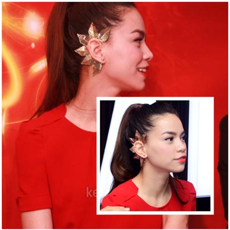Hồ Ngọc Hà ít khi sử dụng hoa tai ngoại trừ những lần diện những bộ đầm dạ tiệc lộng lẫy. Cô đặc biệt thích hoa tai màu vàng ánh kim để làm sáng khuôn mặt của mình.